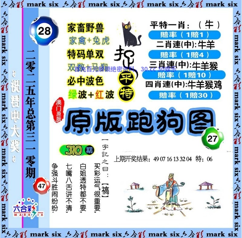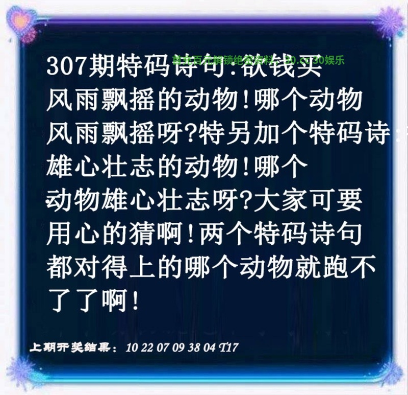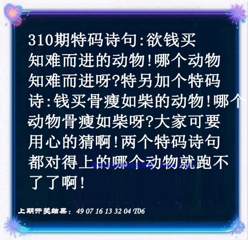 | 307期:正版【猜特输尽光】开狗20准 【今期买牛输尽光,要知客处平安日】 |