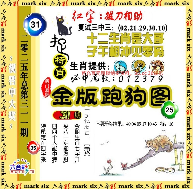| 311期⑨码 | 08.30.04.43.02.05.36.23.49 | 开:發00 |