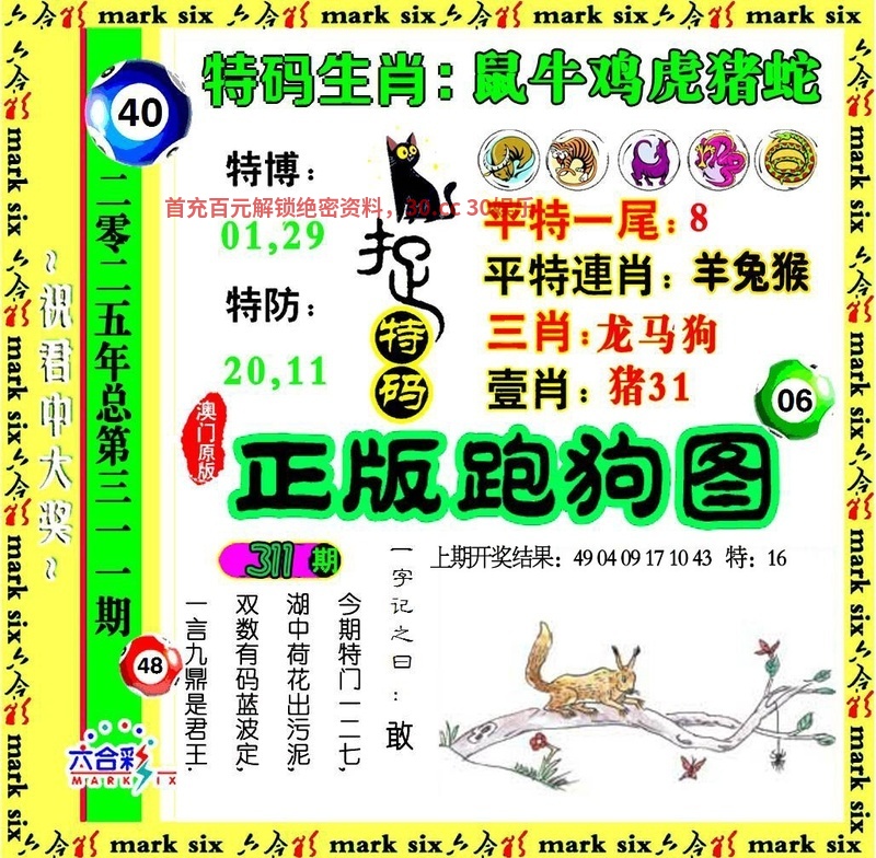 | 301期吉【马龙蛇羊】凶【鼠狗猪猴】x |