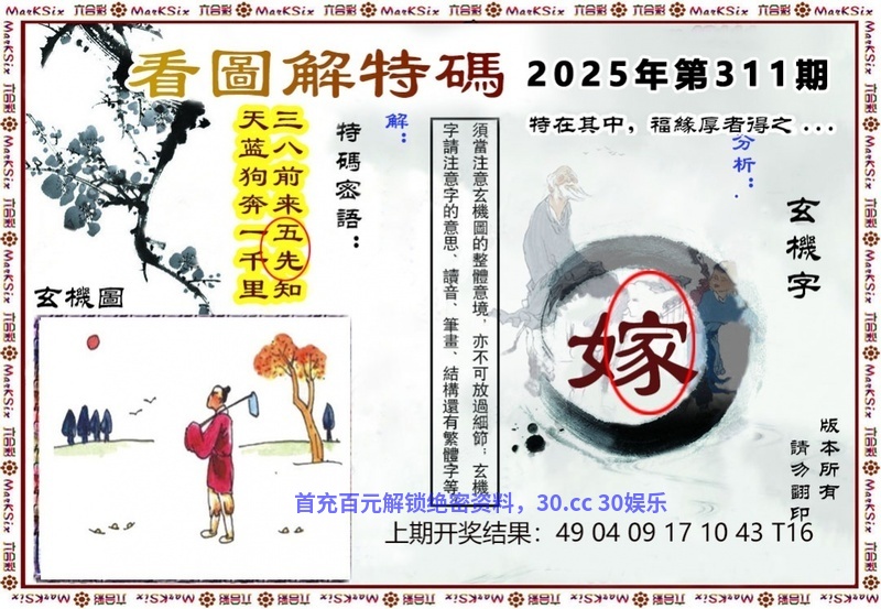| 311期:正版【猜特输尽光】开發00准 【今期买鼠输尽光,本宜新枝泉水少】 |